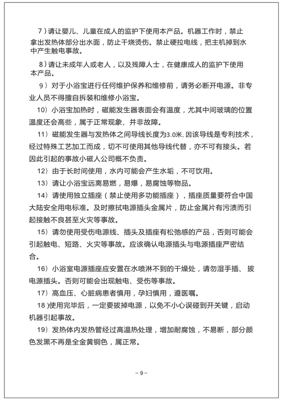> 磁能感应热水器说明书